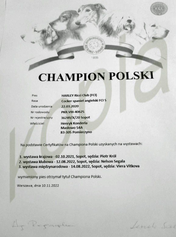 PL.J.CH. PL.CH. HARLEY Ricci Club was shown in