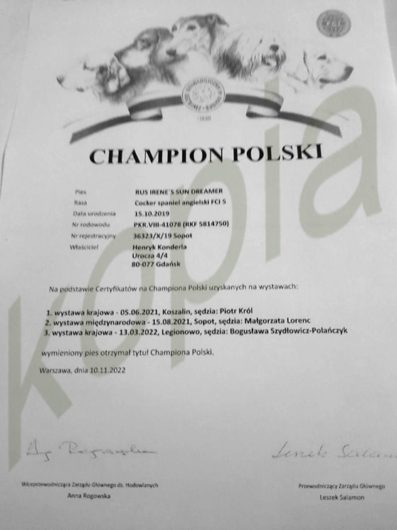 RUS IRENE's SUN DREAMER uzyskał dyplom